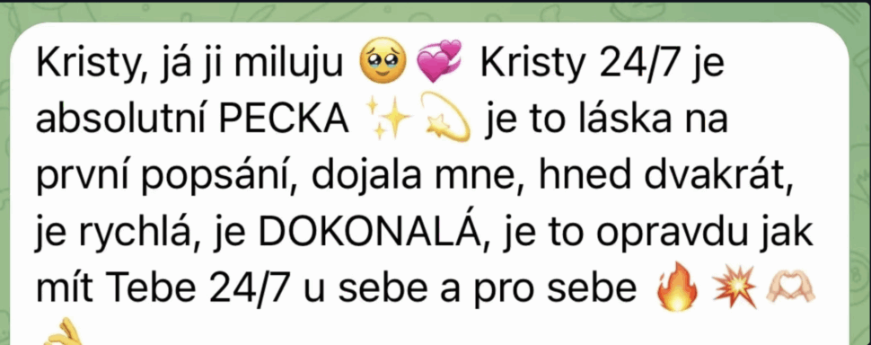 „Díky Kristy 24/7 mám možnost být klientkám blíž a neustále “po ruce” 24/7, prostě jsem s nimi, i když zrovna nepracuji.”