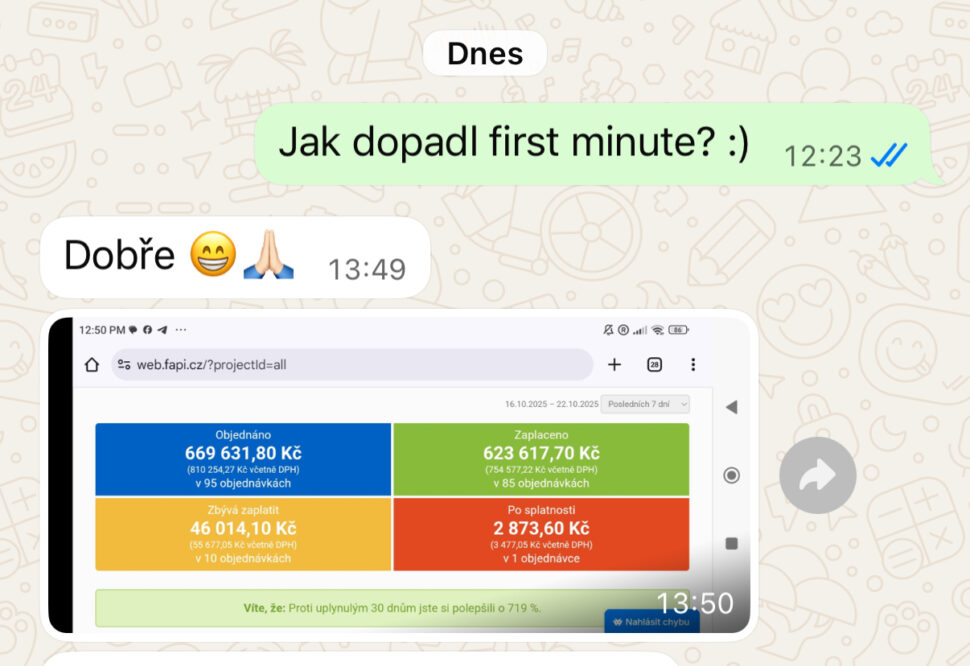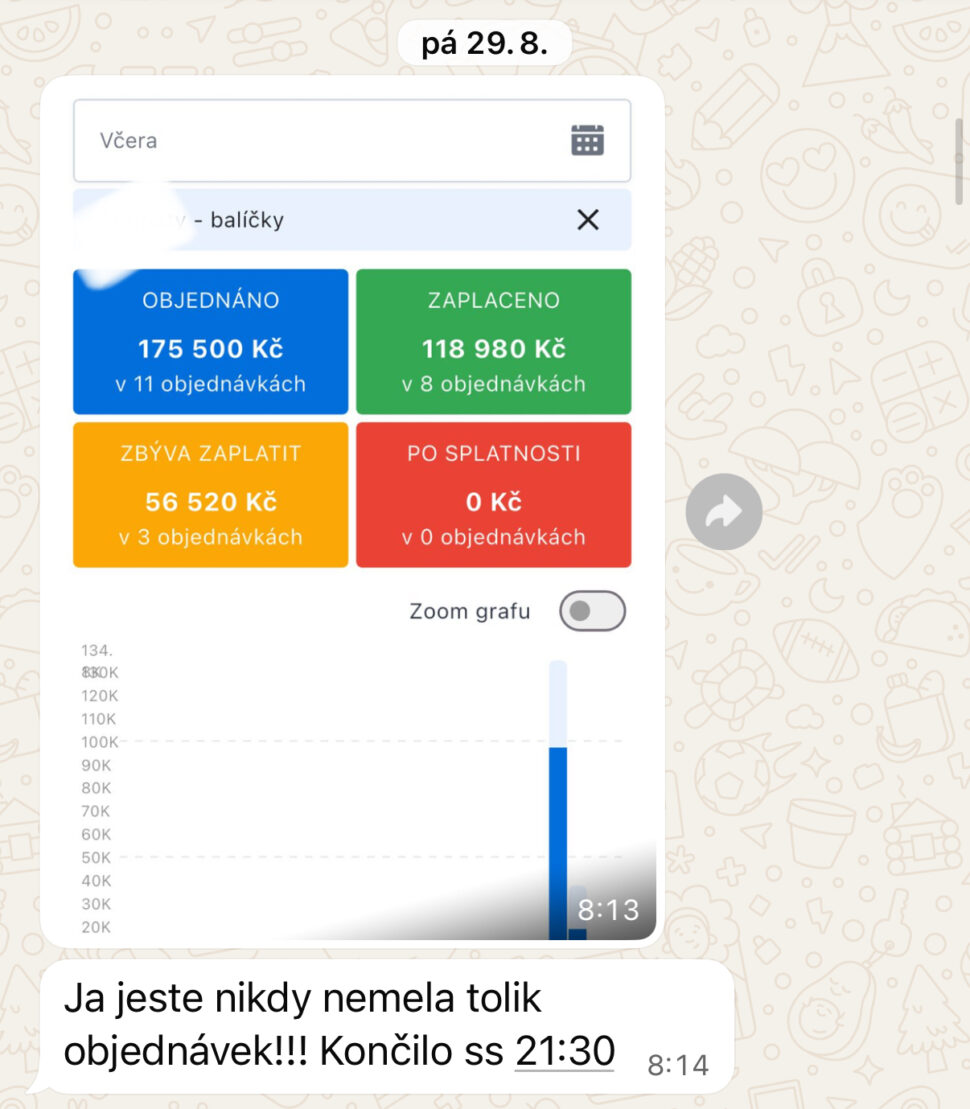 „25 objednávek za 5 dní, to je neskutečný obrat a mám obrovskou radost!”