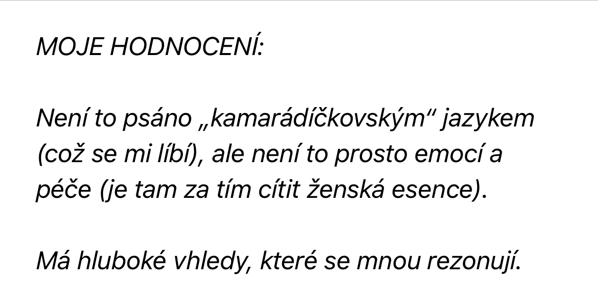 Tato zpráva, která mi přišla od jedné testerky, mluví za vše: